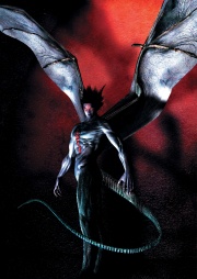 - Devil stands in Mirror Darkness. He blasts a laser from through the roof and appears standing on the top of a skyscraper. He takes flight into the night sky toward a full moon.