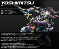 Some of Yoshimitsu's customizations. He is standing in Hidden Retreat. |