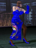 Tekken 2 sees Anna return in the same costume with a minor alteration to the dress’s avian design as it is reversed to face the opposite direction. Her Player 2 costume was again a blue palette swap of her primary costume.