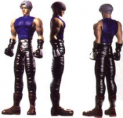 Lee Chaloan has distinctive silver hair which covers most of the top part of his head and he has dark gray eyes. His primary outfit is a vest with the face of a unicorn at the back, leather pants, gloves and shoes. His secondary outfit is a classical tuxedo. Their colours vary with the series. His appearance is though to be based on Dante, the protagonist of the Devil May Cry video-game series, due to the great similarities between their hair styles and colours.