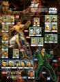 Over 35 stages are available, including all-new stages and a remade forest stage from Tekken 3. All of the existing stages from Tekken 5 have been set in different times of day, with different appearances (Heihachi's Hon-Maru compound, which was called Burning Temple in Tekken 5, for instance, is not burning anymore, and the Secret Garden stage is now strewn with jack-o-lanterns.). The prior versions of these stages are still available, but they must be unlocked. The game features 35 playable characters. There are many more customization items for the characters, and for the first time, Mokujin and Eddy Gordo can be customized, as well. All extra costumes from the PS2 edition of the game are present, and some, such as Ling Xiaoyu and Asuka Kazama's school uniforms, have been made customizable. The three animal characters, Kuma, Panda, and Roger Jr., have had their custom color regions expanded / reworked, including color options for Roger Jr. and Panda's fur. The bear characters have more expressive facial animation (mouth movement). Eddy Gordo is a standard character, separate from Christie Monteiro, with his own character select space and customization items. Armor King returns to the Character Roster with many of his own moves rather than sharing many of King I and King II's moves. All characters have acquired some new moves. Many characters have received new animations, shown before and after a battle. Most have only one new animation, but some, like Lee Chaolan, have received two. Jinpachi Mishima has an altered appearance, with a skin texture like veins of fire or flowing magma, and a glowing white horn protrudes from his forehead. The selection screen and VS loading screen sport new CG renders of all the characters, most featuring new default color schemes.